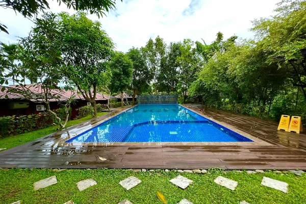 Relax and unwind by our expansive swimming pools, explore our organic farm with fresh produce available for purchase, and enjoy the convenience of ample parking. Our dedicated, qualified, and well-trained team is committed to delivering exceptional service, ensuring your stay is memorable and rejuvenating.