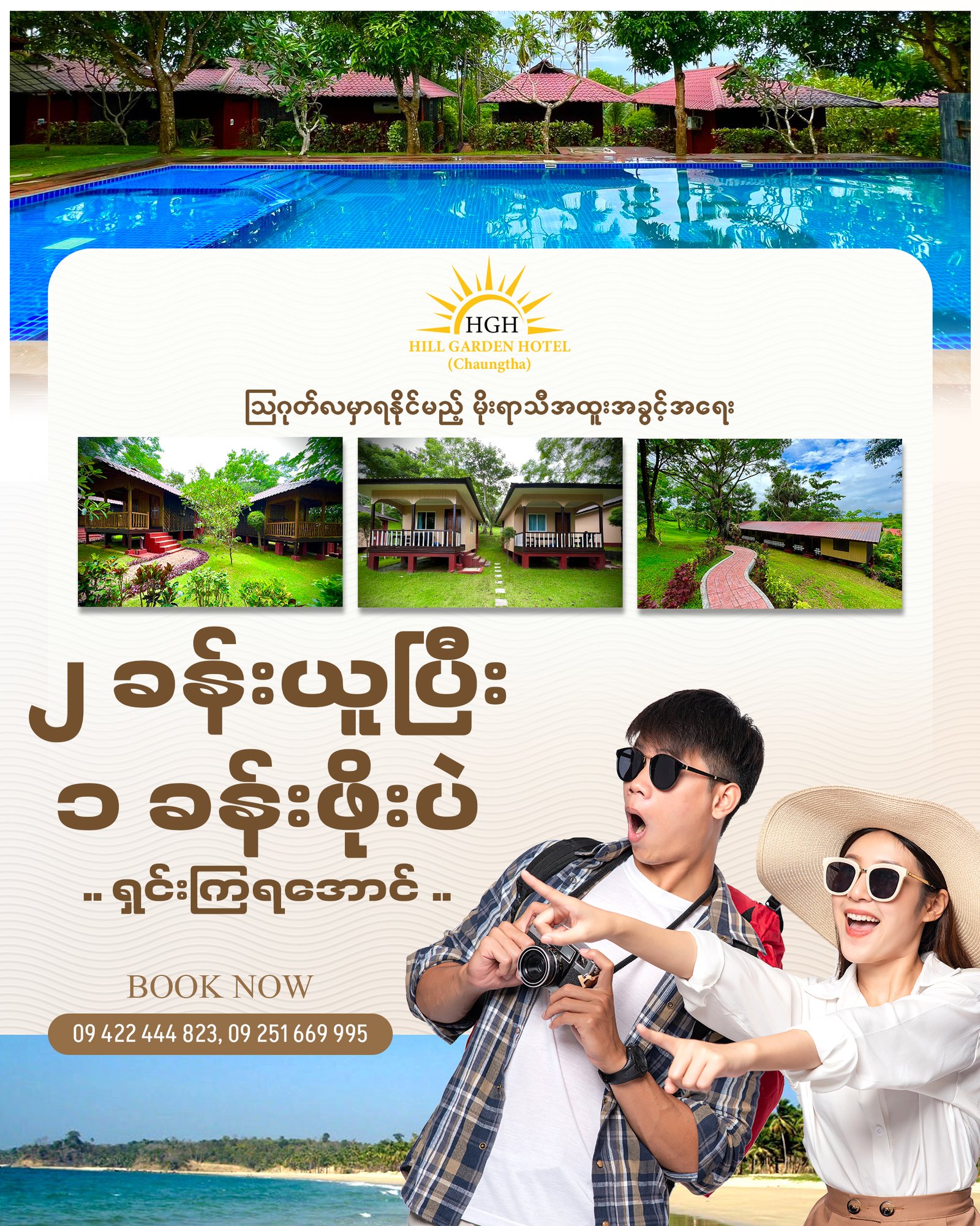 Nestled in the serene hills overlooking Chaung Tha Beach, Hill Garden Hotel offers an unparalleled retreat with breathtaking views and unmatched comfort. Our hotel offers a range of accommodations, including family rooms, deluxe rooms, and single rooms, all built with sustainable bricks and bamboo to blend seamlessly with nature.