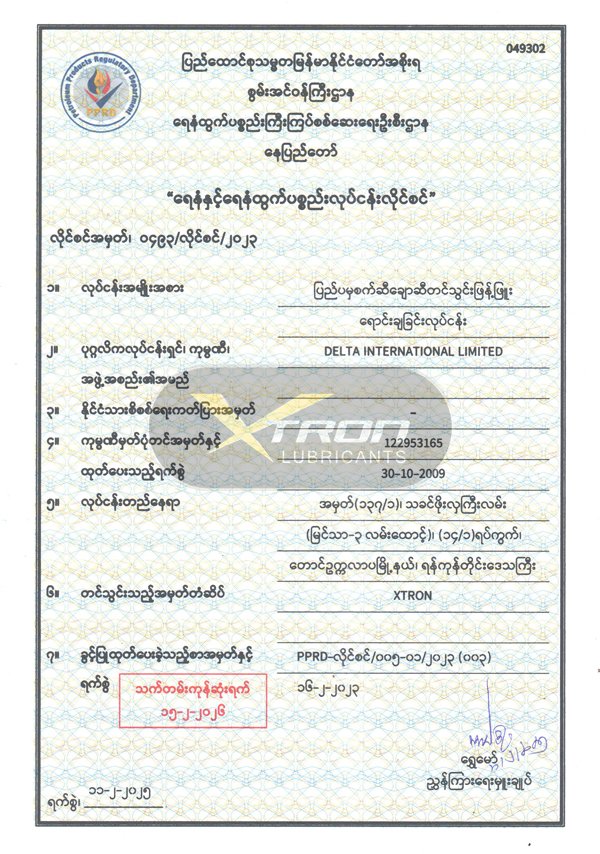 A trusted UAE brand, Xtron Lubricants offers high-quality yet cost-effective solutions ideal for consumers. Delta International Limited has been the official distributor of Xtron products in Myanmar since 2017, supplying them to both retail and wholesale markets across the country.